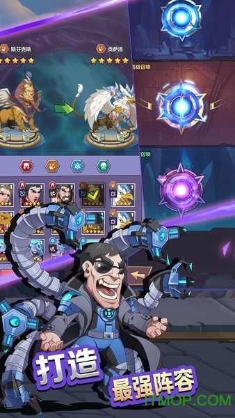 游戏拥有超过200位风格迥异的英雄角色,包括怪兽、机甲、僵尸、神灵等多元类型。每个英雄都有独特的属性和技能,玩家可以根据不同战斗需求灵活调整阵容,创造出属于自己的独特战术流派。