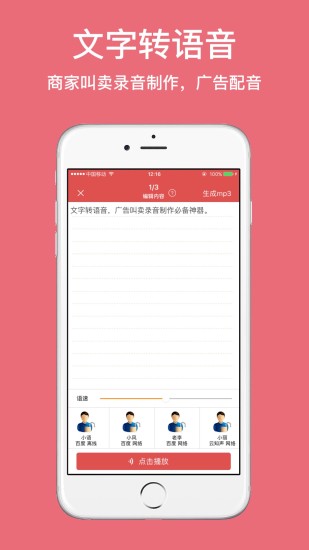 朗读女配音手机版是一款功能强大的语音合成应用,为用户提供丰富多样的配音体验。无论是商场促销广告、有声读物录制,还是个性化音频创作,这款软件都能轻松胜任。它支持中英文切换,内置多种发音人和海量背景音乐,让您的配音作品更加生动专业。通过简单的操作,用户可以将文字快速转换为高质量的语音文件,并支持MP3导出和多平台分享。无论是商业用途还是个人娱乐,朗读女都能满足您的配音需求。