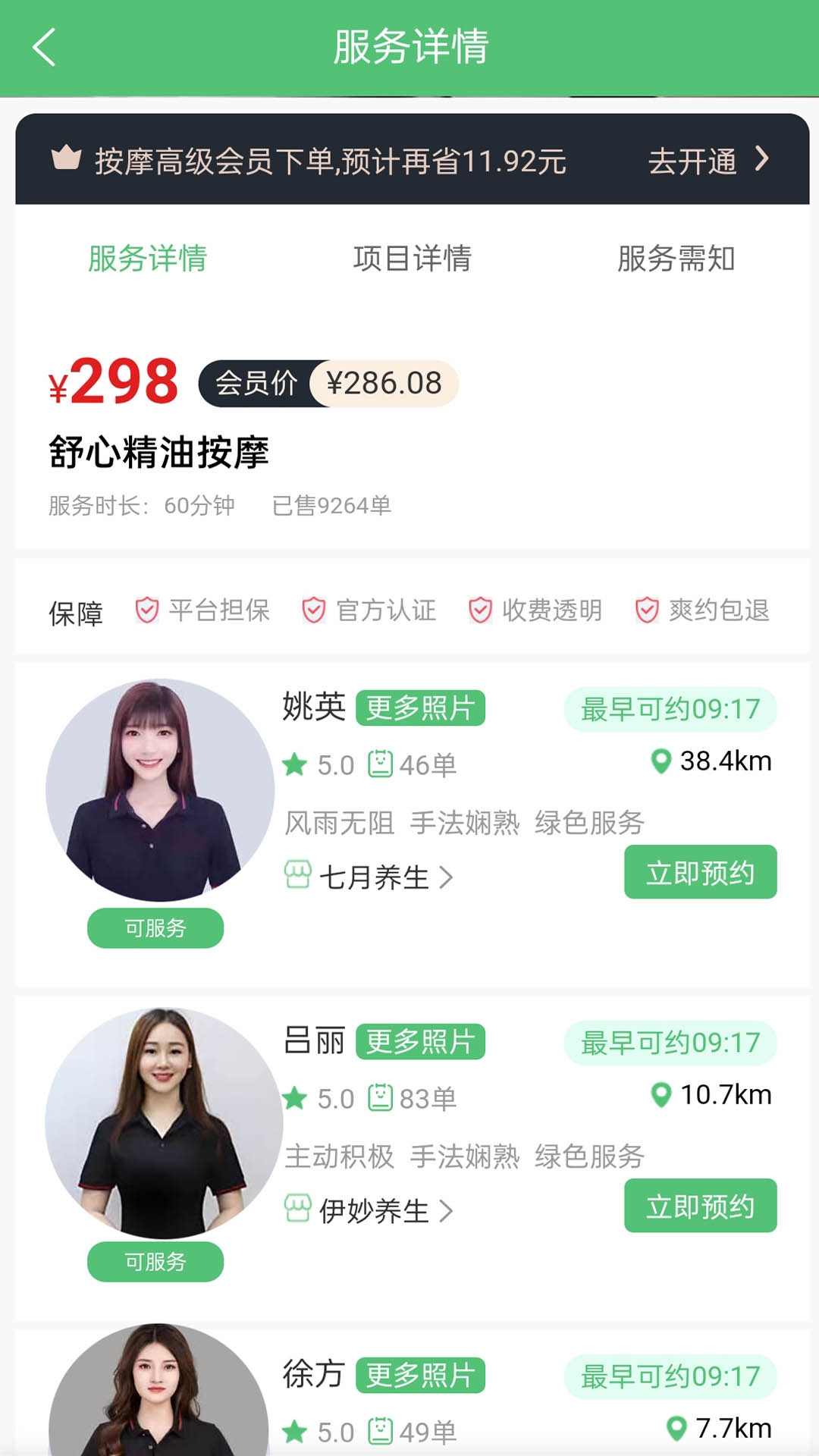 欢乐到家特别注重服务的安全性与正规性,所有服务过程都严格遵守行业规范,确保用户的隐私安全。平台还配备了专业的客服团队,随时为用户解答疑问、处理需求,让每位用户都能享受到无忧的服务体验。从预约到服务完成,欢乐到家全程为您保驾护航,让健康养生变得简单又安心。