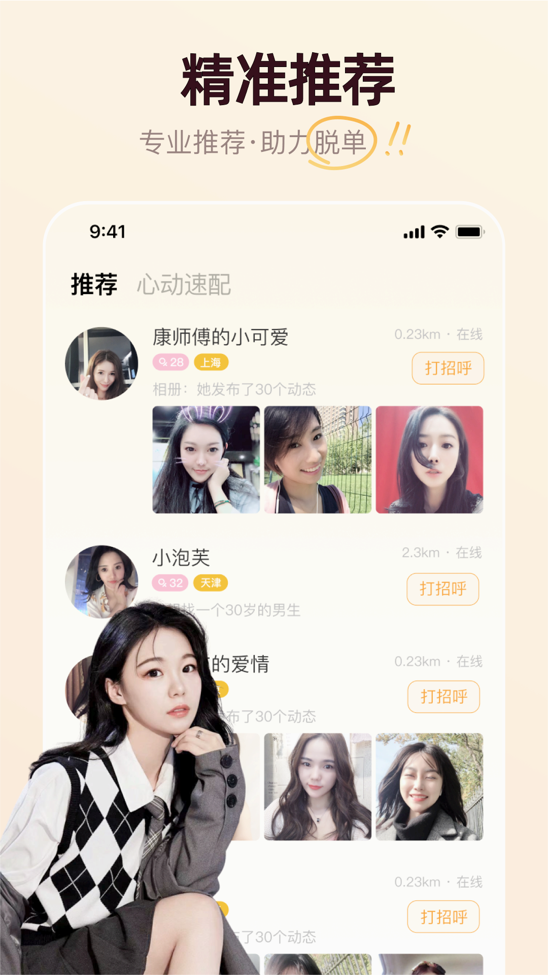 全新的视频相亲模式带来前所未有的互动体验,让交友过程更加生动有趣。平台采用智能匹配算法,根据你的兴趣爱好精准推荐合适对象,大大提高脱单成功率。