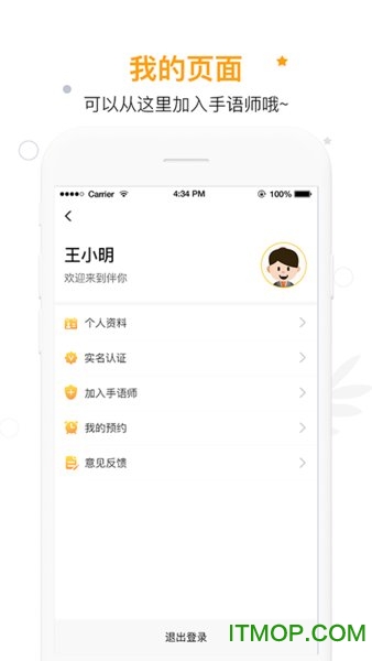 个性化用户中心:用户可以在"我的"界面管理个人资料、查看历史服务记录、收藏常用手语师,还能申请加入手语翻译师团队,共同为无障碍沟通贡献力量。