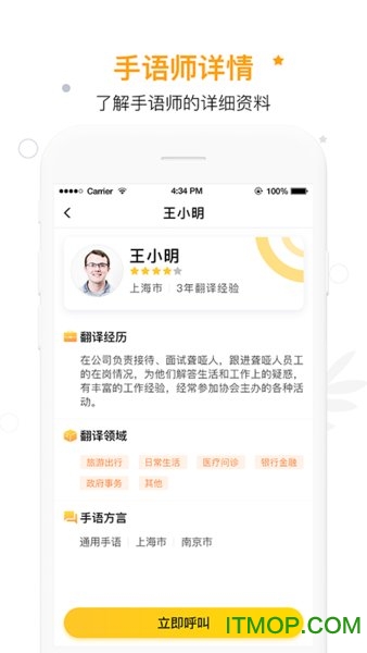 详尽的手语师资料库:每位注册手语翻译师都经过严格认证,用户可查看其专业背景、服务经验、擅长领域等详细信息,确保选择到最匹配的服务提供者。