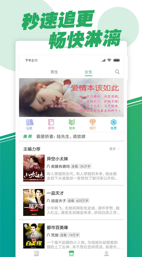 海量书库:精选百万部小说,言情穿越奇幻武侠一网打尽,满足各类读者的口味需求;