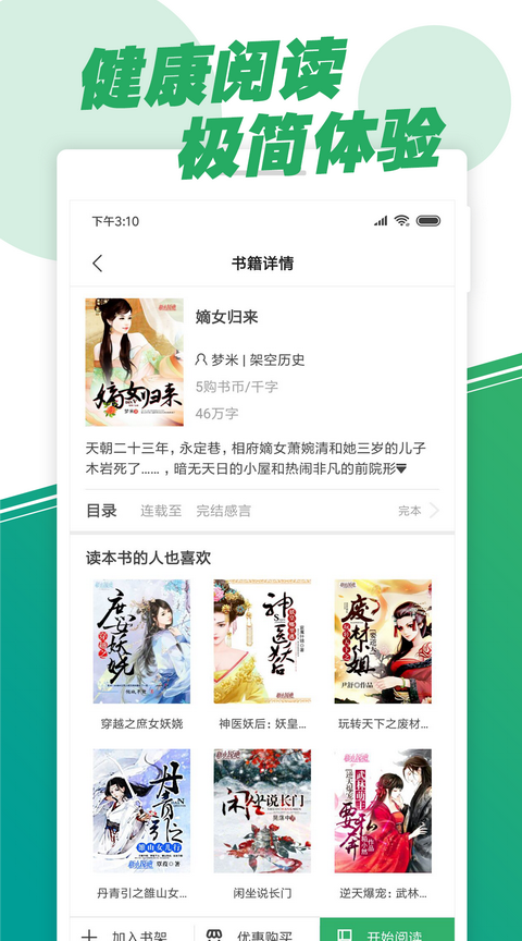 全屏阅读、目录浏览、书签收藏、智能记忆上次阅读位置等贴心功能,让你的阅读体验更加完美。