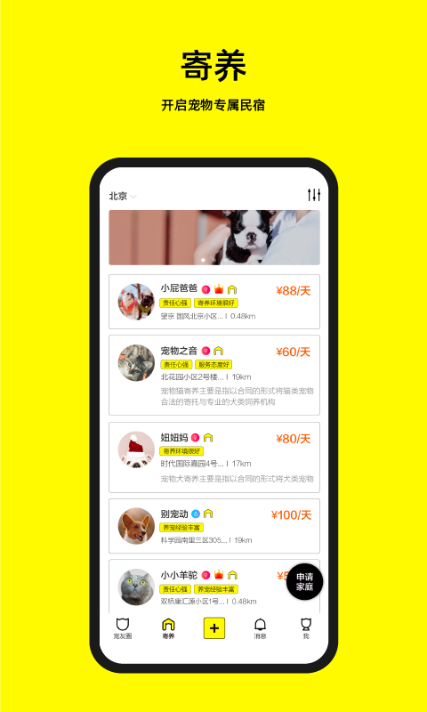 宠音app下载,一款专为爱宠人士打造的综合性宠物社区平台,集宠物寄养、日常分享、知识交流于一体。在这里,你可以轻松找到全国范围内值得信赖的宠物寄养家庭,记录和分享与爱宠相处的每一个珍贵瞬间,还能获取专业的宠物养护知识。无论你是资深铲屎官还是新手宠物主人,宠音都能满足你对宠物生活的所有需求。