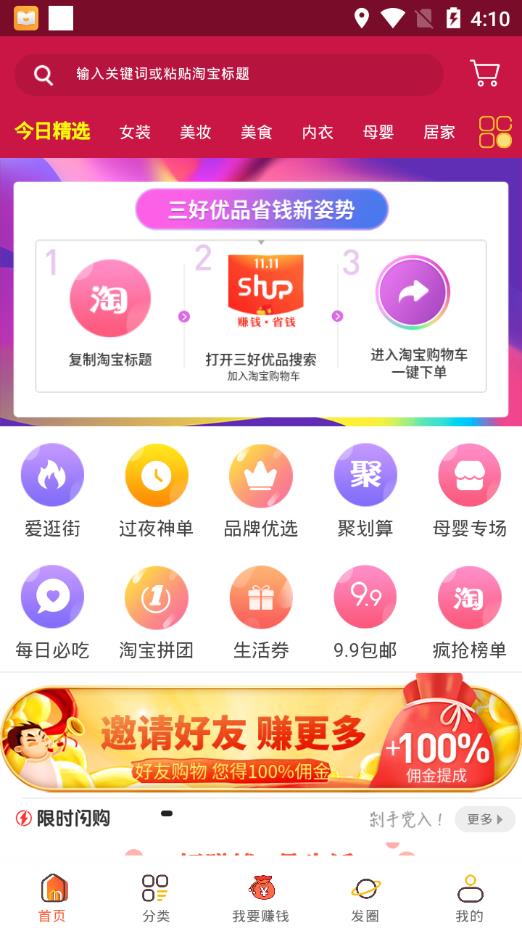 9.9元特惠专区:精选超值低价商品,包邮到家还能获得佣金返利,真正实现低价购物。