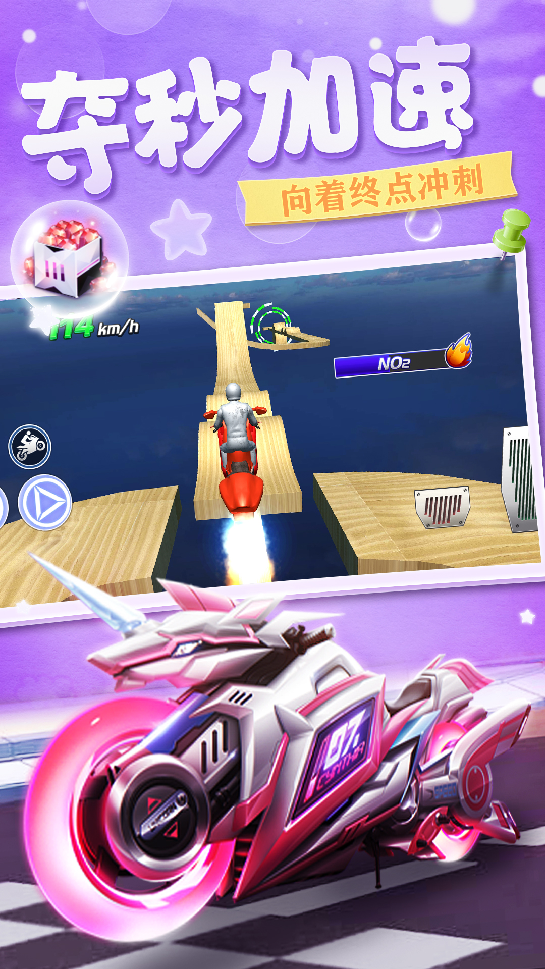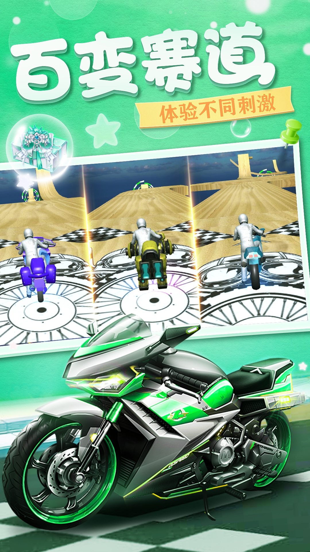 游戏提供了数十种不同性能的摩托车可供选择,从基础款到顶级赛车应有尽有。高级摩托不仅拥有更快的速度和更强的稳定性,还能解锁特殊技能,让比赛过程充满变数。赛道设计融合了物理引擎特性,真实的碰撞反馈和惯性表现让驾驶体验更加逼真。精心打造的卡通画风配合动感音效,营造出轻松愉快的游戏氛围,让玩家在紧张刺激的比赛中也能会心一笑。