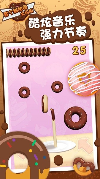 - 游戏特别设计了极具解压效果的玩法,当看到一个个甜甜圈完美地串在一起时,那种成就感令人畅快淋漓