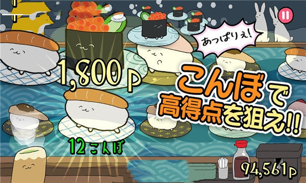 寿司与它的朋友会在画面中向左及向右移动!?这种动态的设计让游戏充满了挑战性。你必须立即判断并选择,快速反应才能抓住那些调皮的寿司。然後点击那些随机出来又跑走的寿司们!每一次点击都需要精准的判断和敏捷的操作。你的动态视力&判断力&瞬时力量将会爆炸!爆炸!游戏中的特效和音效会让你感受到前所未有的刺激。每当点击成功时,寿司们也将会产生变化喔!这种互动让游戏更加生动有趣。