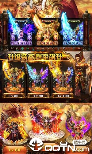 上线登录赠送VIP12,元宝*38888,绑定元宝*38888,金币*500万,让你起步就领先他人一大截。完成第一个任务直升99级,另送一套90级装备,前期任务一路秒杀,轻松度过新手期。充值比例1:500,首冲4倍1:2000,超值返利让你花小钱办大事。七日登陆送豪礼,前四天每日都可领取不同部位的橙色装备武器,助你快速成型。充值运营活动全线开放,成倍数赠送,加大充值活动幅度,福利拿到手软。BOSS爆率提升,刷怪神装掉不停,极品装备不再是梦想。