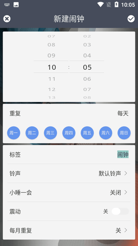 番茄闹钟的设计理念是简单实用,没有繁琐的操作步骤,让用户能够轻松设置和管理闹钟。软件占用内存小,运行流畅,不会影响手机的其他功能。用户可以根据自己的习惯自定义闹钟的重复周期,细化到分钟、小时、天甚至月份,满足不同场景的需求。此外,番茄闹钟还支持跳过本次闹钟的功能,当用户已经清醒时,可以点击跳过本次提醒,而不会影响下一次的闹钟设置。