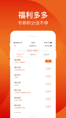 任务中心福利多:平台设有丰富的任务系统,用户通过完成每日任务可以提升等级,赢取书券和其他惊喜奖励,让阅读充满乐趣。