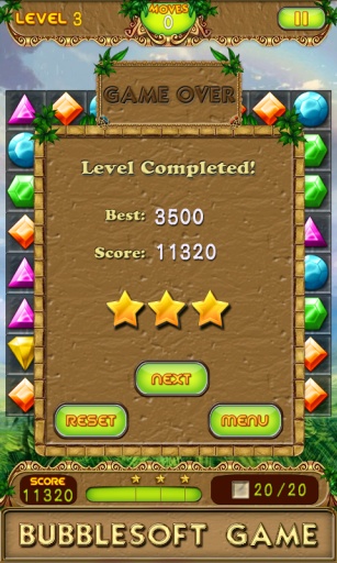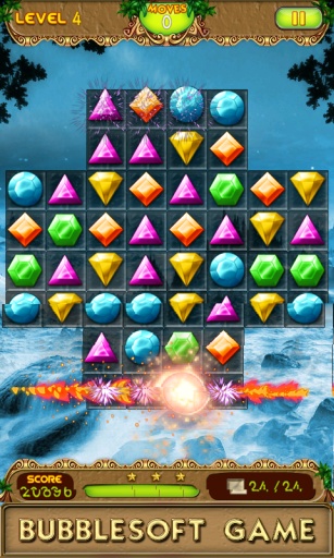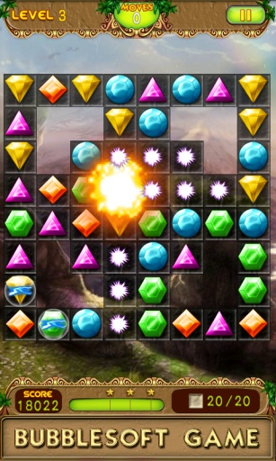 游戏操作简单直观,只需触摸相邻的宝石即可完成交换。当三个或更多相同类型的宝石连成一线时,它们就会被消除并获得分数。特别值得一提的是,消除钻石不仅能获得高分,还能同时消除其下方的背景方块。游戏设有多种挑战模式,包括限时模式和限步模式,玩家需要在规定条件内完成特定数量的背景方块消除任务。随着关卡推进,游戏难度会逐渐提升,需要玩家运用策略思维来规划每一步操作。