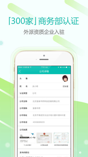 [实名认证]:名片执照派遣资质,严格审核招聘公司信息,确保所有用人单位都经过资质验证;