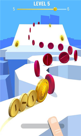 游戏开始只需轻触屏幕即可启动硬币滚动。通过长按屏幕来控制硬币的移动方向和速度。在前进过程中要时刻注意躲避地图上的各种障碍物。收集散落在赛道上的小金币可以增加生命值,即使不小心碰到障碍物也能继续游戏。特别要警惕从天而降的危险物品,一旦被砸中就会导致游戏失败。成功抵达终点即可通关,点击下一关按钮可以继续挑战。游戏还提供了多种硬币皮肤奖励,玩家通过特定数量的关卡后即可解锁这些个性化装扮。