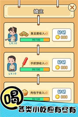 《天天路边摊》不仅是一款游戏,更是一场美食创业的奇妙冒险。在这里,你将经历从零开始的创业全过程:从最初的小推车到连锁摊位,从简单的小吃到创意料理,每一步成长都充满成就感。游戏特别设计了超过100种食材和50多种特色菜品,让你可以自由发挥创意,研发独家秘方。随着摊位升级,还能解锁更多高级设备和装饰,打造独具特色的网红摊位。游戏还加入了季节限定活动和节日特别任务,让经营体验更加丰富多彩。无论是想轻松休闲还是挑战经营极限,《天天路边摊》都能带来不一样的快乐。