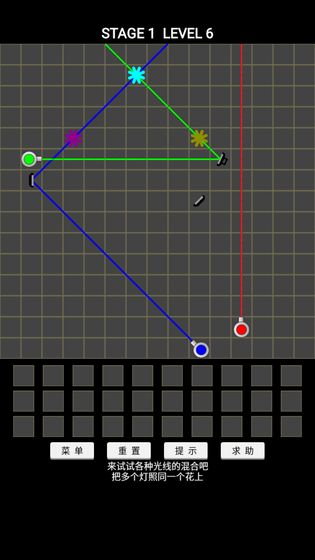 游戏操作看似简单,只需移动下方的镜子来折射光线,但实际玩起来却充满挑战。玩家需要掌握三原色混合原理:红加绿得黄,红加蓝得紫,绿加蓝得青,三色合一成白光。随着关卡深入,谜题复杂度骤增,需要玩家反复尝试不同摆放方式。通关后的成就感无与伦比,特别是独立解决难题时的喜悦。游戏提供免费提示功能,通过观看短视频即可获得帮助,这种设计既照顾了玩家体验,也支持了开发者。后期关卡难度极具挑战性,需要玩家充分发挥逻辑思维和空间想象力,是锻炼大脑的绝佳选择。