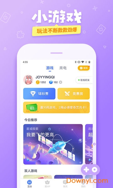 爱奇艺友趣app原名"小手电",现已升级为功能更强大的社交娱乐平台。它不仅保留了原有的社交优势,还新增了更多互动玩法。在这里,你可以通过海量原创小游戏结识新朋友,系统会根据你的兴趣爱好智能推荐匹配对象。平台采用先进的算法分析用户特征,确保每次匹配都能带来愉快的社交体验。无论是想找游戏搭档还是生活伴侣,这里都是你的理想选择。