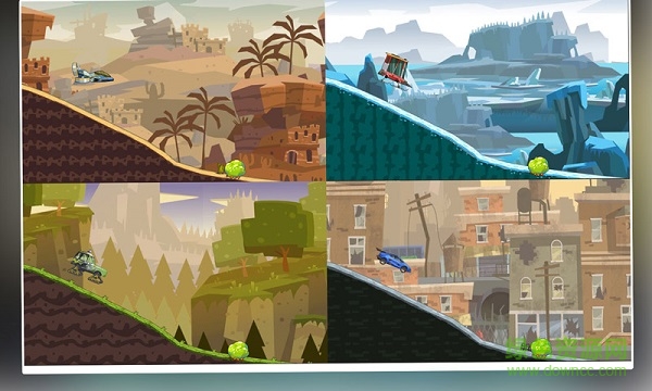 游戏首发版本包含山地、雪地、沙漠和城市四大主题场景,每个场景都拥有完全不同的地形特征和视觉风格。山地路段充满急弯和陡坡,考验玩家的操控技巧;雪地场景会出现打滑现象,需要更谨慎地控制车速;沙漠地形则有流沙区域,会显著降低载具速度;城市环境布满废弃车辆和建筑残骸,是最考验反应速度的战场。每个场景还设置了独特的隐藏路线和彩蛋,等待玩家探索发现。