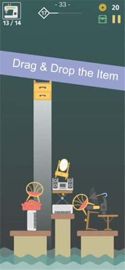 游戏开始之后会从天上掉下来各种各样的家具,有点类似俄罗斯方块的感觉,但是并不是俄罗斯方块。每个物品都有独特的物理特性。