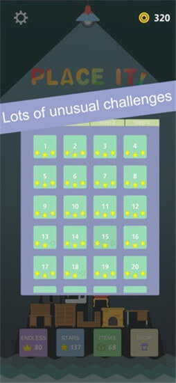 PlaceIt游戏是一款物理类型堆叠桌椅板凳重力游戏,玩法类似堆箱子。但加入了更多创新元素,让传统玩法焕发新生。