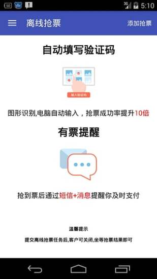 火车票轻松购是一款专为12306官网购票设计的手机应用,它为用户提供了全自动离线抢票功能,让购票变得前所未有的便捷高效。无论是日常通勤、商务出行,还是节假日返乡探亲,这款应用都能成为您购票的得力助手。通过智能化的抢票系统和简洁的操作界面,用户可以轻松完成购票流程,彻底告别传统购票方式中需要长时间守在电脑前刷票的困扰。