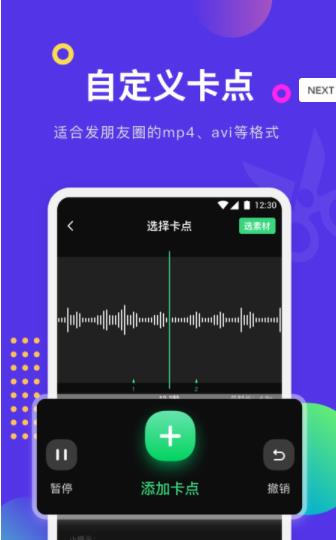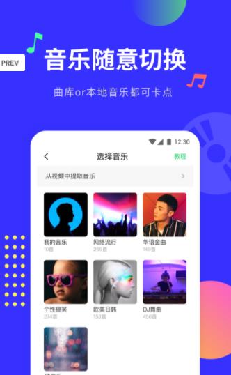 跟着鼓点点击添加卡点,一键导入图片素材,并给图片选择合适的动效即可生成小视频啦。更有音乐曲库可供选择,还可以从视频中提取音乐踩点。