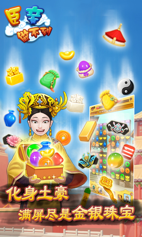 谁说深宫大院就一定要寂寞无聊?谁说后宫佳丽就非得争风吃醋?《宫廷消消乐》为您打开一扇通往欢乐宫廷世界的大门!在这里,您可以体验从默默无闻的小主到权倾后宫的娘娘的华丽蜕变,甚至可以过一把当皇上的瘾。游戏将传统三消玩法与宫廷元素完美融合,独创的"凤舞九天"、"在天之灵"等特色技能,让每一次消除都充满惊喜。当您听到"启奏皇上:臣妾做不到啊!"这样的经典台词时,一定会会心一笑。