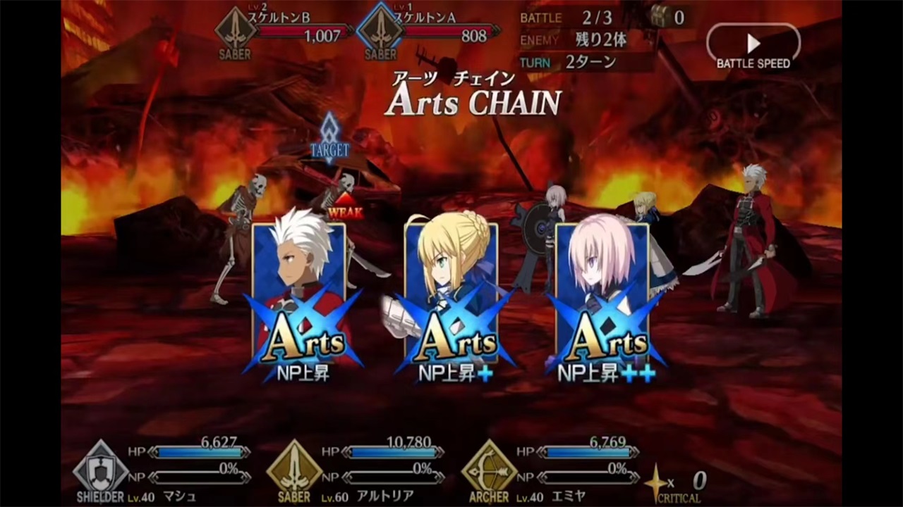 Artschain(三张指令卡均为蓝卡)-参与chain的每名从者都会获得20%的充能