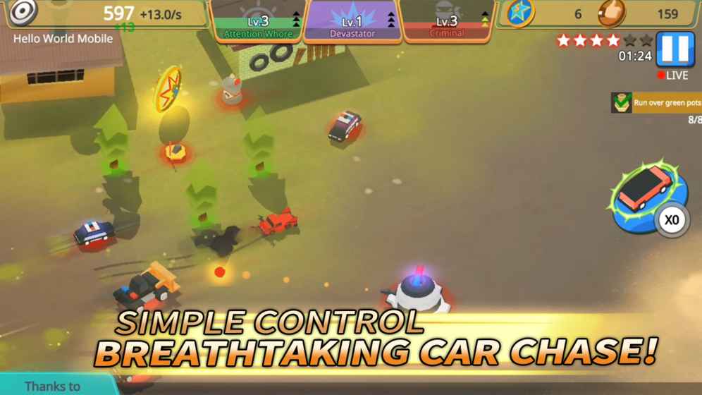 在这个虚拟与现实交织的直播时代,你将扮演一位初出茅庐的赛车主播,怀揣着成为顶级网红的梦想。游戏设定在一个充满活力的开放世界城市中,这里不仅有专业的赛车场地,还有错综复杂的城市街道。你需要通过直播自己的赛车实况来吸引观众,无论是惊险的漂移过弯、刺激的警匪追逐,还是令人瞠目结舌的特技表演,都能为你带来海量的粉丝关注。记住,在这个世界里,观众就是你的衣食父母,他们的每一个点赞和打赏都将助你登上人气巅峰!