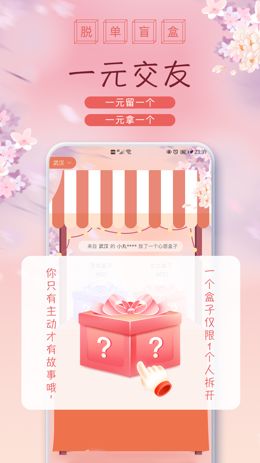 【活动规则】仅需一元就能获得一个盲盒,里面可能藏着你的缘分!平台上汇聚了大量优质单身用户,机会稍纵即逝,快来参与吧!