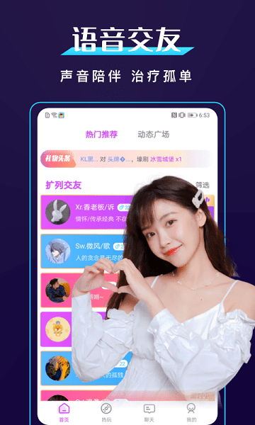 在线点单、实时互动、温馨电台;汇聚众多可爱的小哥哥小姐姐,你可以边玩边聊,扩大你的交友圈,体验不一样的游戏和暖心陪伴。平台还支持个性化动态发布,让你展示独特魅力,吸引更多志同道合的朋友关注互动。