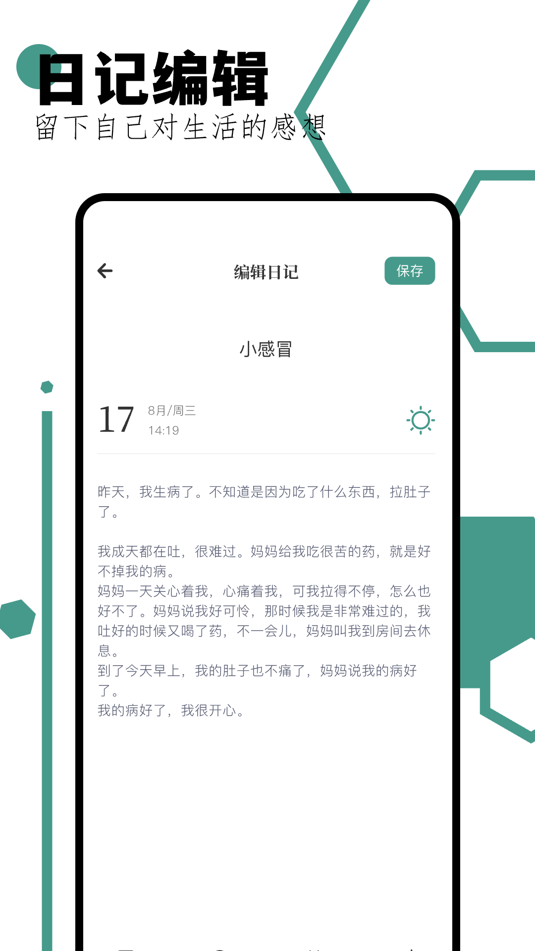 日记编辑:支持文字、图片、表情等多种形式,让你的日记内容更加丰富多彩;