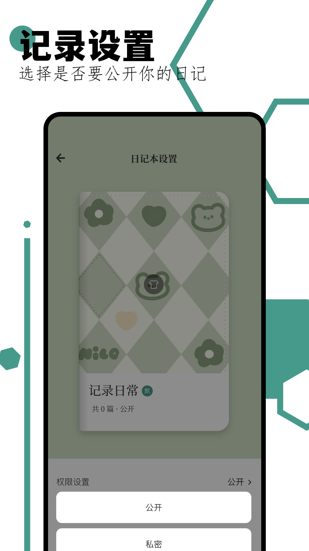 记录设置:灵活设置日记的可见范围,可以选择私密保存或与特定好友分享;