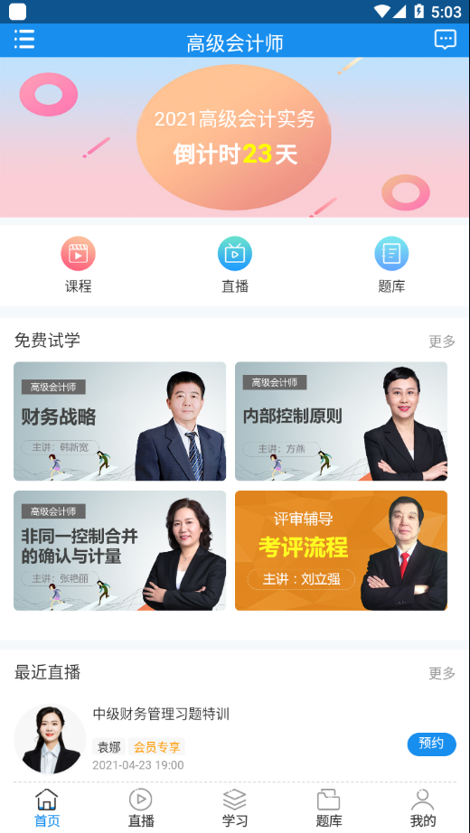 财会学堂app是一款专为财会专业人士打造的一站式移动学习平台,覆盖了从初级到高级的各类财会资格考试。无论是准备高级会计师、中级会计师、初级会计师考试,还是备考高级经济师、税务师、注册会计师等专业认证,亦或是会计领军人才、CMA、CIMA、高级统计师等高端资格考试,财会学堂都能为您提供最专业的学习支持。我们的目标是通过优质的教学资源和智能化的学习工具,帮助每一位学员顺利通过考试,实现职业发展目标。
