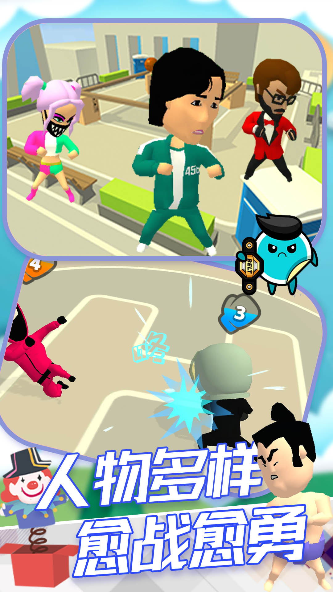 游戏提供了丰富多样的格斗体验。玩家可以从众多迷你斗士中选择心仪的角色,每个角色都拥有独特的格斗风格,包括拳击、空手道、跆拳道等多种综合格斗技巧。游戏的核心玩法是将对手推下擂台,通过精准的踢击和连招积累分数,分数越高就能打出更具破坏力的强力一击。随着游戏进程,玩家还能解锁更多特殊技能和必杀技,让格斗体验更加丰富多彩。
