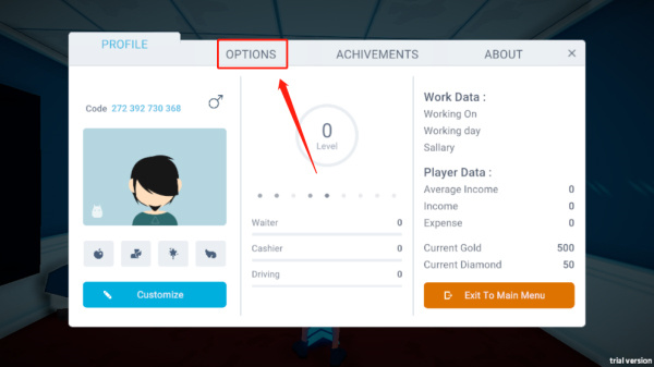 打开失业生活模拟器游戏,进入游戏后,我们可以为自己的角色取名字和DIY喜欢的形象,