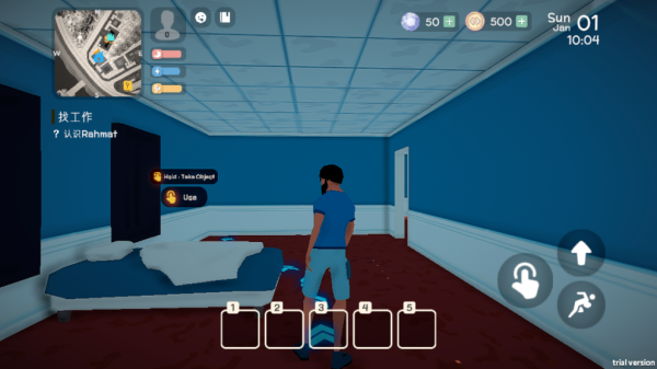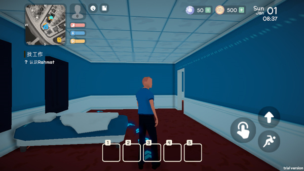 《失业生活模拟器》是一款匠心独具的3D角色扮演游戏,凭借其精致的场景建模与高自由度的开放式玩法,为玩家打造了极具沉浸感的虚拟世界。在游戏中,玩家将化身一位面临职业危机的年轻人,亲历求职路上的酸甜苦辣,直面职场生涯的种种挑战,体验一段别样的人生旅程。游戏不仅提供了广阔的城市探索空间,让玩家可以随心所欲地穿梭于城市的每个角落,更精心设计了多样化的职业体验,让玩家感受不同行业的独特魅力与挑战。此外,游戏还配备了丰富的交通工具系统,助玩家在街头巷尾间自在穿行,感受城市生活的脉动。